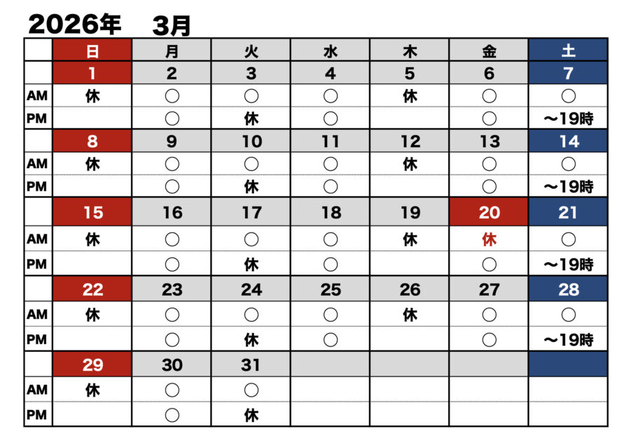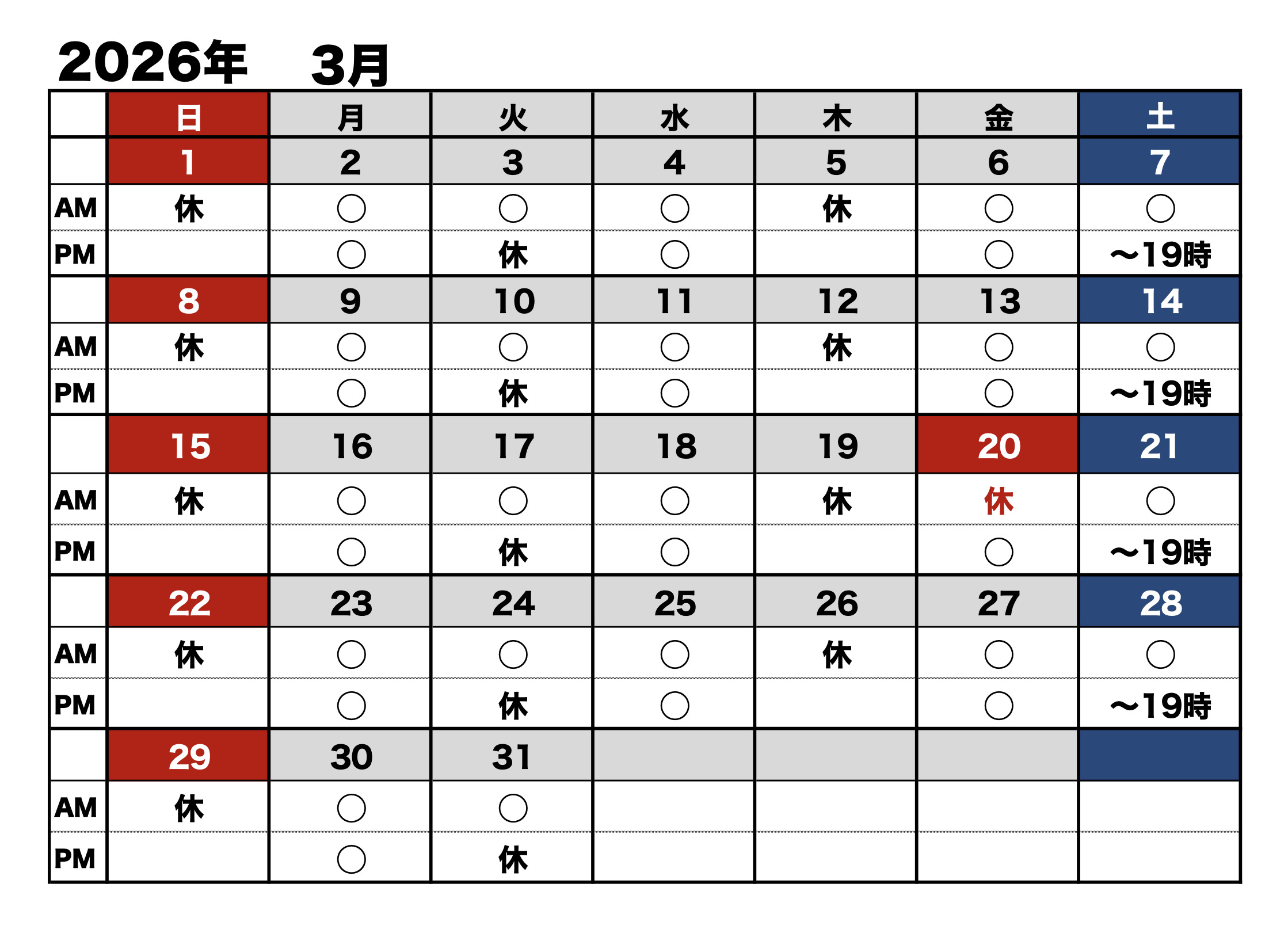 完全予約制で待ち時間なくスムーズに施術を受けてもらう事が出来ます。また、駐車場7台完備で、夜8時まで営業していますので安心して通いやすい。